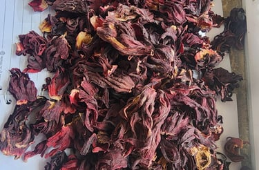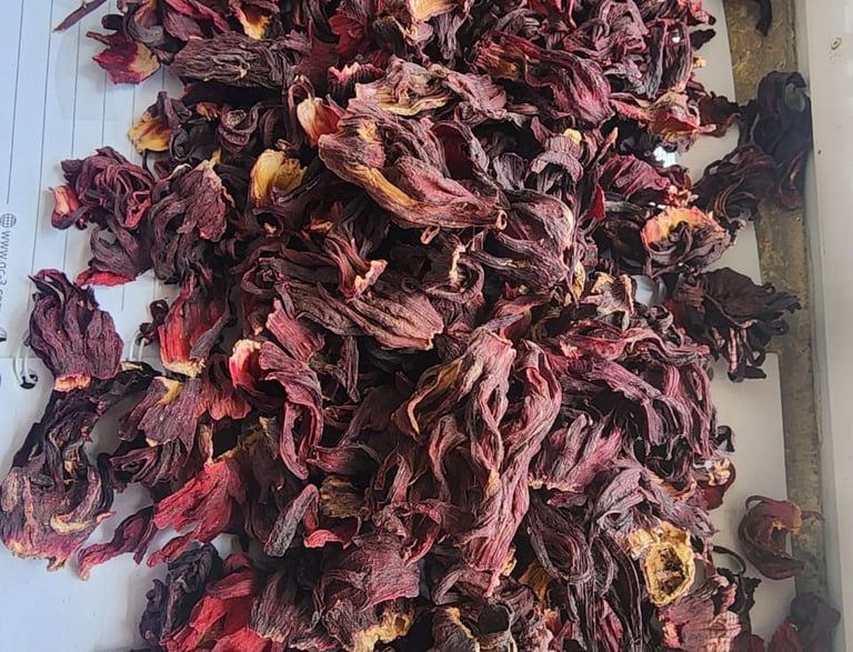 Dried hibiscus flowers, perfect for teas and culinary uses.