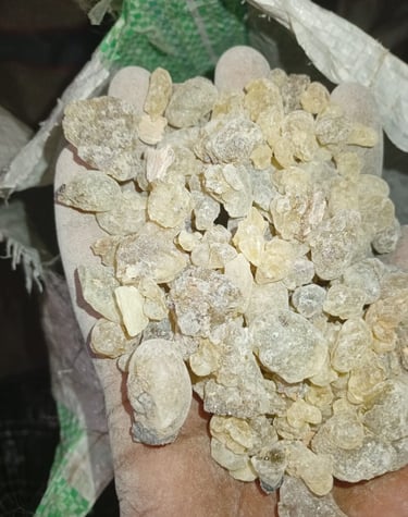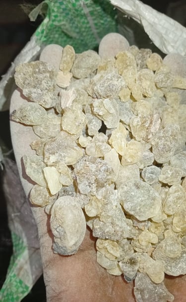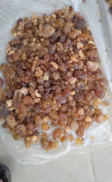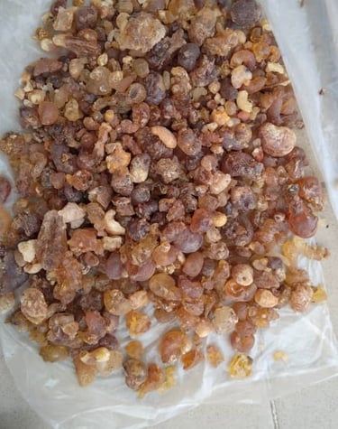 Resin extracted from Boswellia tree, used in incense, perfumes, and traditional medicine.